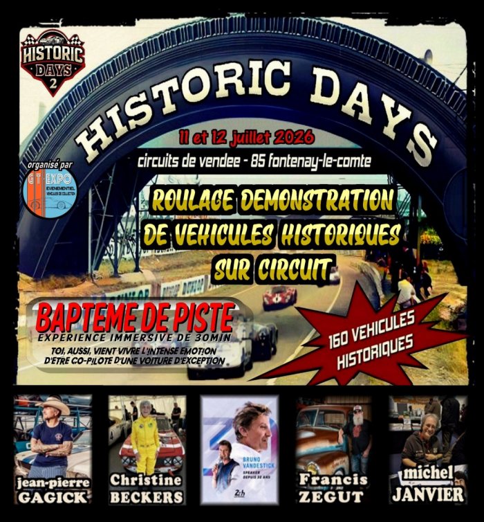 Avec son plateau exceptionnel, ses invités de prestige et une ambiance résolument vintage, HISTORIC DAYS 2026 s’annonce comme un rendez-vous majeur du calendrier historique français, à vivre absolument pour tous les amoureux de belles mécaniques et de patrimoine automobile.